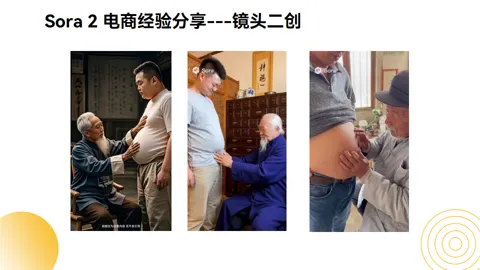 他用Sora 2通过变换老中医的服装、改变看诊的场景,甚至调整肥胖男士的体态,就能制作出多个全新的原创素材,获得更长的生命周期和更好的投放效果。